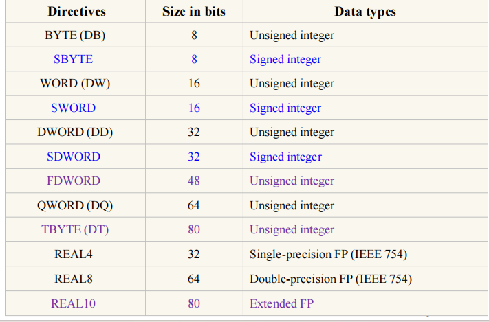 MASM Data types¶