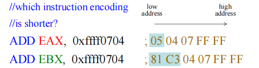 使用EAX进行ADD计算会比使用其它寄存器在编码上更短,有更高的code density ,更加cache-friendly