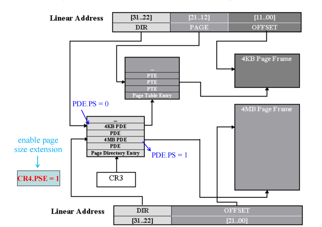 - 如果物理地址扩展被禁用(CR4.PAE=0)并且 CR4.PSE=1,则支持的最大物理页面为 4MB。