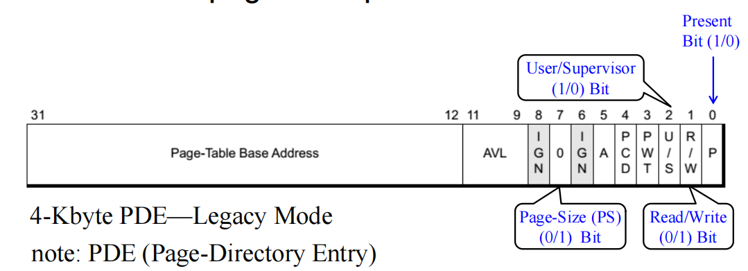 - 当 CR4.PSE = 1 且 PDE.PS = 1 时,该 PDE 直接映射 4MB 大小的页。