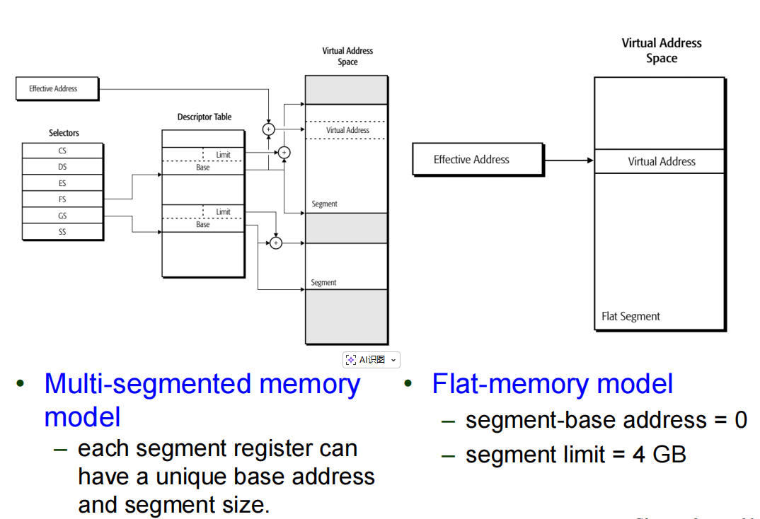- 段寄存器包括 CS、DS、ES、SS、FS 和 GS。
