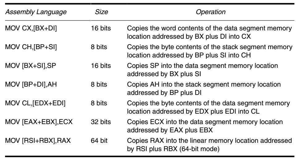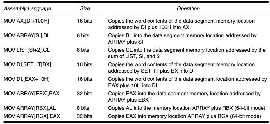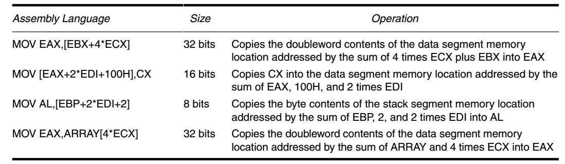 这些数据寻址方式在所有英特尔微处理器中都存在,但 **比例变址寻址方式(scaled-index-addressing mode)**仅存在于80386到Core2系列。