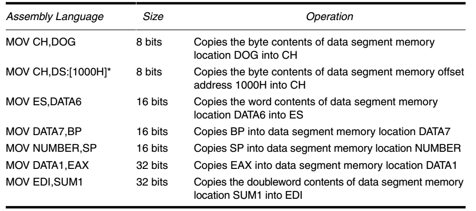 - 在 80386 及更高版本的处理器中,可以传送 2、4 或 8 字节。