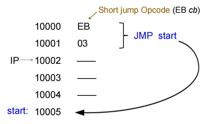 | Short Jump | Relative | 立即数嵌入指令 (机器码层面) | 只能跳 ±127 字节,依赖当前 IP。 |