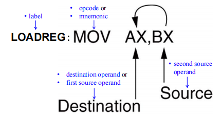 - 例如指令 MOV AL, BL,其中操作码为 MOV,操作数为 AL 和 BL。