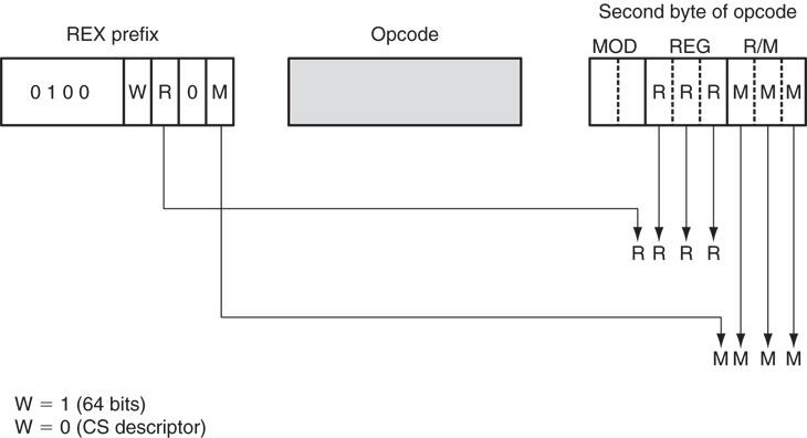在64位模式下,引入了一个称为REX(寄存器扩展)的前缀,用于扩展操作数大小以及支持R8-R15等新寄存器的使用。