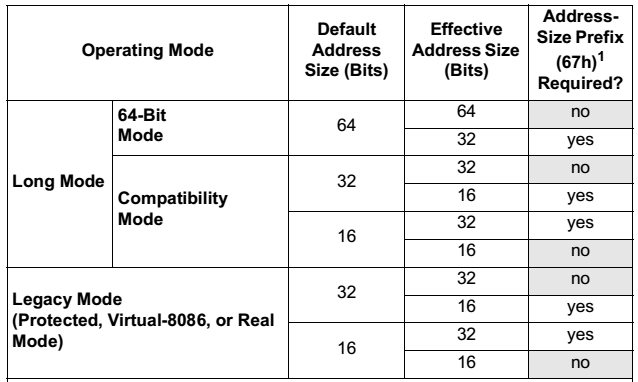 - 操作有三种模式,其默认地址和操作数长度如下: