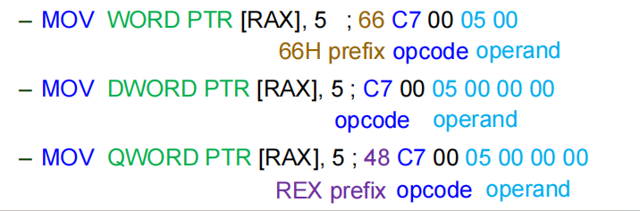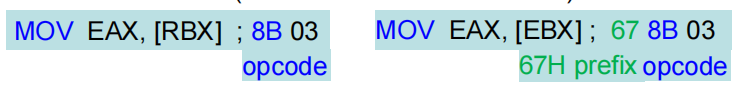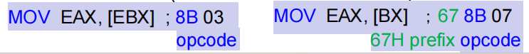 - 根据默认操作数/地址大小,生成正确的指令编码,例如: