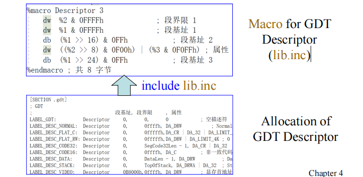 宏也可以在数据段中使用。例如,可以定义一个用于 GDT 描述符的宏。