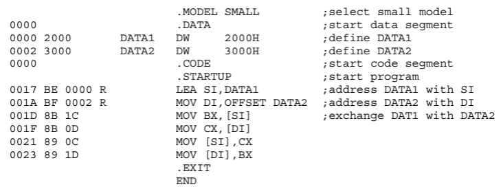 MOV DI, OFFSET LISTB