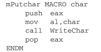语句 “mPutchar 'A'” 会调用 mPutchar,并将字母 A 作为参数传递给它。