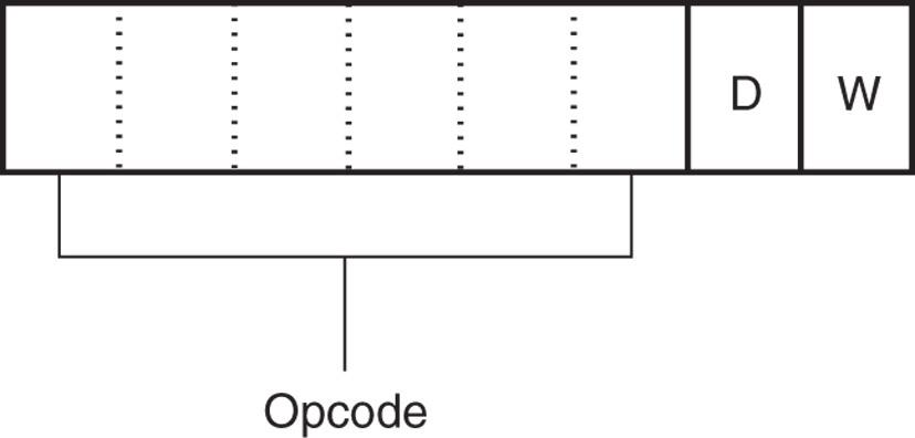 - 数据大小位W,用于指示数据长度(字节或字/双字)。