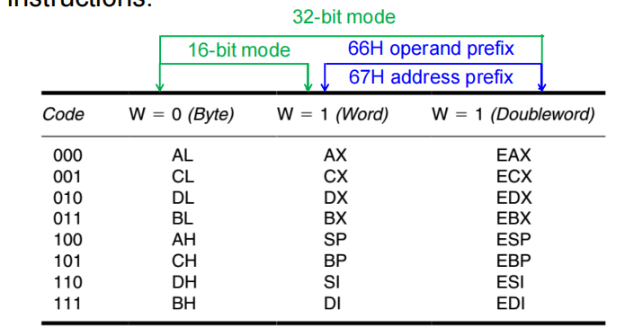 - 若W=1,数据大小为字(16位)或双字(32位)。