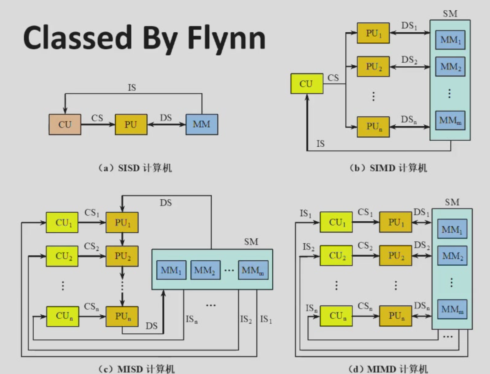 - SISD: Single Instruction Stream, Single Data Stream