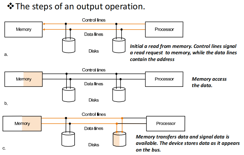 - Output: 从主存到设备,write only;