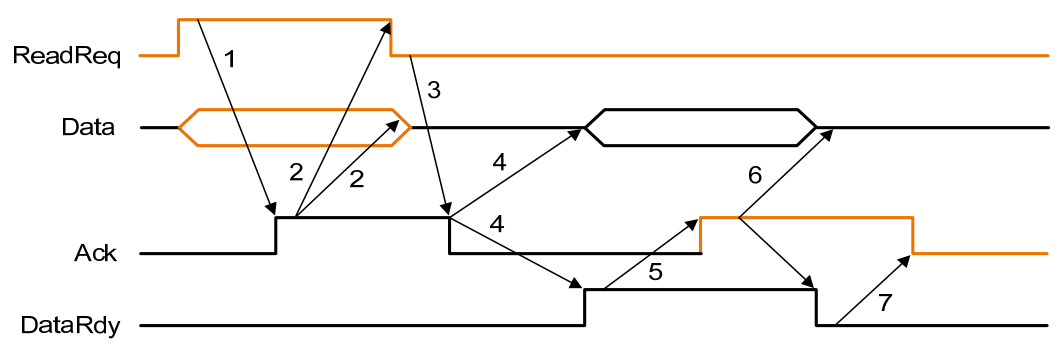 ReadReq信号已被置低后,将Ack信号置低。 - 当主存储器准备好数据后,将数据放到数据总线上,并升高