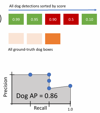 - 将该类别的所有检测结果按置信度分数从高到低排序