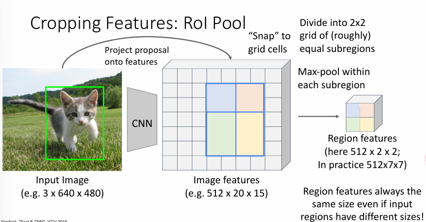 - 对于每个候选区域,使用RCNN模型得到分类的分数和位置的回归结果