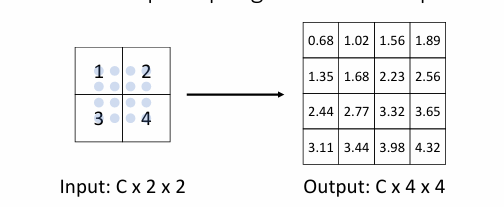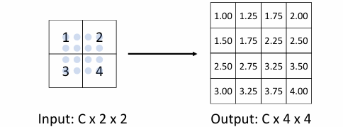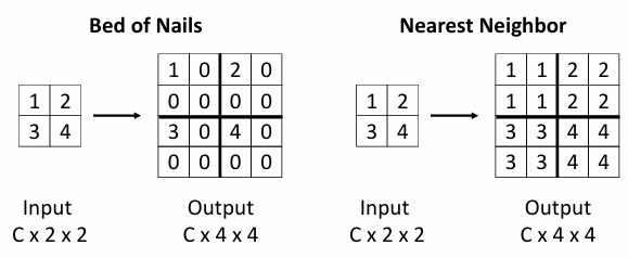 相比Bed of Nails和Nearest Neighbor方法,双线性插值能够产生更平滑的上采样结果,这对于语义分割等需要精细空间信息的任务特别重要。