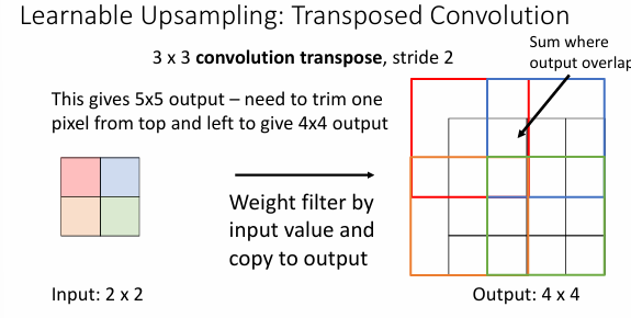 将输入特征图对应位置的值与卷积核相乘,得到一个3×3的特征图,然后将其中心点作为输出图的第一个位置,然后依次进行,每次前进的步幅为2,对于重叠的部分,取相加;