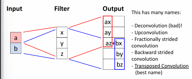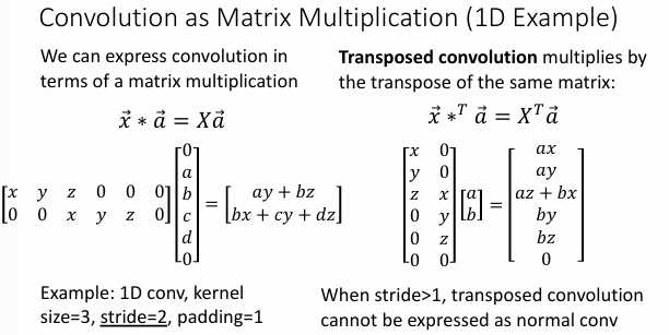 - 当步长为1时,就是普通卷积(但padding规则不同) 例如上面的转置卷积为 当步长大于1时,就不能使用普通的卷积来表示它了