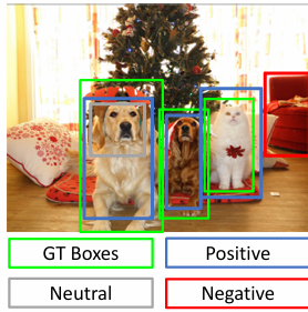 - 中性样本(Neutral) :IoU值在0.3到0.5之间的区域,一般来说这种样本可能是包含了物体的一部分,不太准确,但又不完全是背景。
