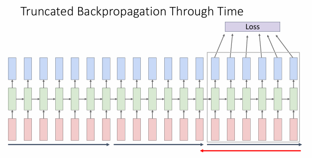 Carry hidden states forward in time forever, but only backpropagate for some smaller number of steps