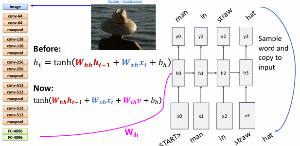 首先使用已经训练好的image net模型提取图片特征,然后使用RNN生成描述图片的句子。
