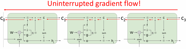 有了cell state,在反向传播的过程中由于只有加法,就不会出现信息的流失。可以解决梯度消失的问题。