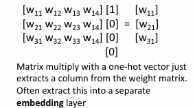 当一个独热向量与权重矩阵相乘时,它实际上是从矩阵中提取一列。 当字典很大时,one-hot编码的维度会很高,所以需要使用嵌入层(Embedding Layer)来将类别数据(如单词或标记)转换为密集的向量表示。