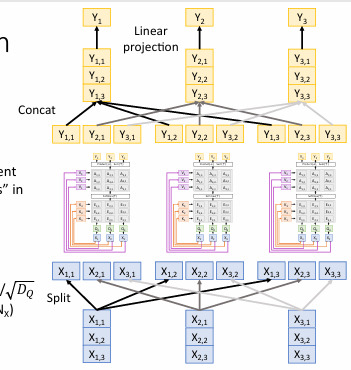 - Similarities: \( \mathbf{E} = \mathbf{Q} \mathbf{K}^T / \sqrt{D_q} \) (Shape: \( N_x \times N_x \)), \( E_{i,j} = (\mathbf{Q}_i \cdot \mathbf{K}_j) / \sqrt{D_q} \)
