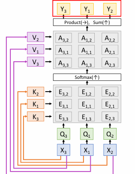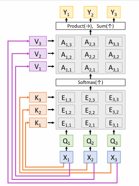 Output vectors: \( Y \) (Shape: \( N_q \times D_q \)) where \( y_i = \sum_j a_{i,j} x_j \),即\(Y=AX\)