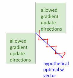 假设\(x\)轴代表\(W_1\),\(y\)轴代表\(W_2\),一开始的loss在原点,需要朝着第四象限移动,即要求\(dW_1\)为正而\(dW_2\)为负,但是由于\(\sigma \left( h_j^{(\ell-1)} \right)\)总是正的,所以\(dW_1\)和\(dW_2\)的符号总是相同的,这将会导致其只能以诡异的之字形下降。