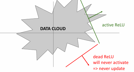 可是如果weight-scale比较大,神经网络的激活函数可能会进入饱和状态(saturation)。这是因为大权重会导致输入到激活函数的值变得很大,从而使得激活函数的输出趋于其极限值。(sigmoid or tanh),同样也会导致local stream=0 and no learning。