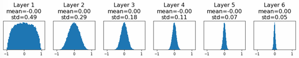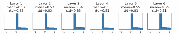 如果说weight-scale比较小,由于activations(f(weight*input))随着神经网络的加深可能会变的集中在0附近