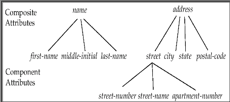 Composite attributes are flattened out by creating a separate attribute for each component attribute. 复合属性被展平为每个组件属性创建一个单独的属性。