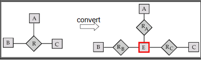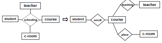 - 将有n个度的关系的位置替换为一个中间的实体集E