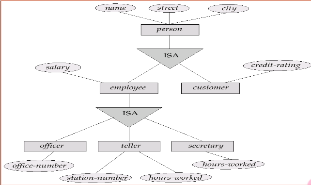 - Specialization: 一个实体集可以被分解为多个子实体集,每个子实体集具有不同的属性。
