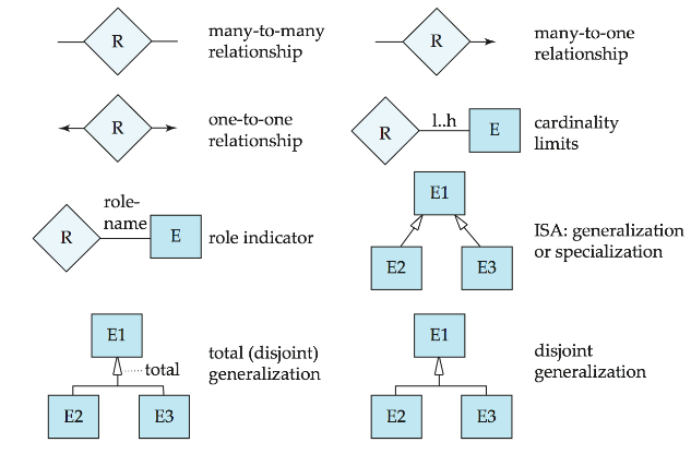 - Generalization: 一个实体集可以被分解为多个子实体集,每个子实体集具有不同的属性。