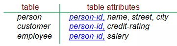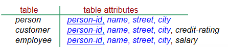 E.g., cust-banker(customer-id, employee-id, type); 但有的customer没有banker, 则合并之后得: Customer(customer-id, cust-name, cust-street, cust-city, banker-id, type) ,导致Customer中有些元组的banker-id、 type为null。