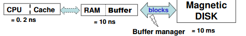 - Capacity : Generally too small (or too expensive) to store the entire database.