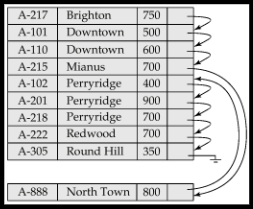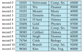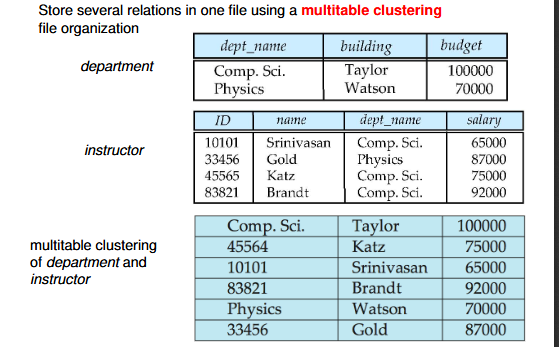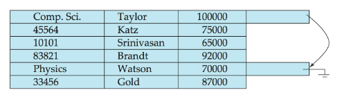- 相关记录物理上相邻(如Comp.Sci.部门记录后紧跟该部门的所有教师记录)