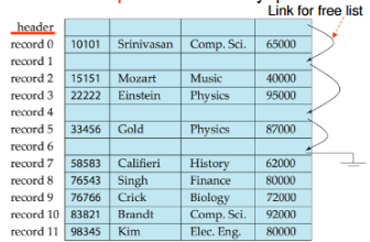 - 每个部门的记录块后面是属于该部门的所有教师记录