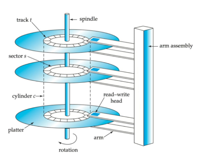 - Storage : Data is stored on spinning disks and read/written magnetically.