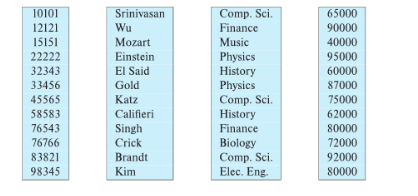 - 部门列单独存储(Comp. Sci., Finance, Music...)