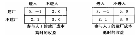 低成本参与人 1 选择不建厂,参与人 2 选择进入;