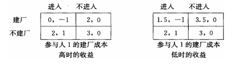 均衡下高成本参与人 1 永远选择占优策略不建厂;