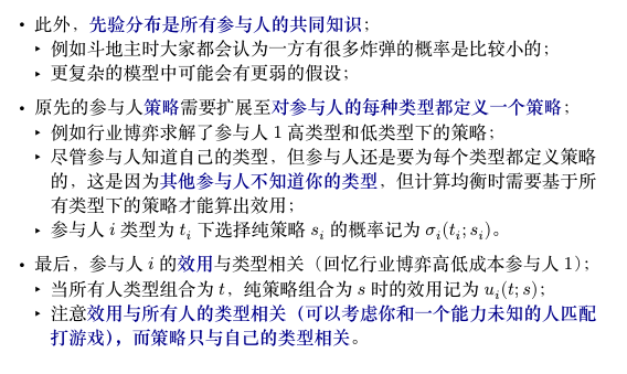 - 先验分布 \(p\) 是给每种类型向量 \((t_1,\ldots,t_n)\) 赋予一个概率;