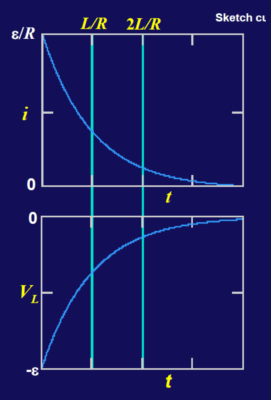 V_L = -L \frac{di}{dt} = -\varepsilon e^{-\frac{t}{\tau_L}}