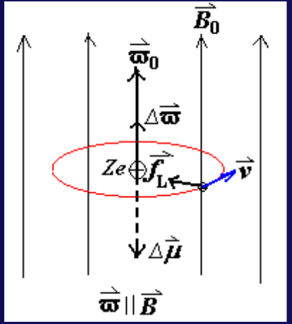 \Delta \boldsymbol{\mu} = -\frac{e r^2}{2} \Delta \boldsymbol{\omega} = -\frac{e^2 r^2}{4m} \boldsymbol{B}